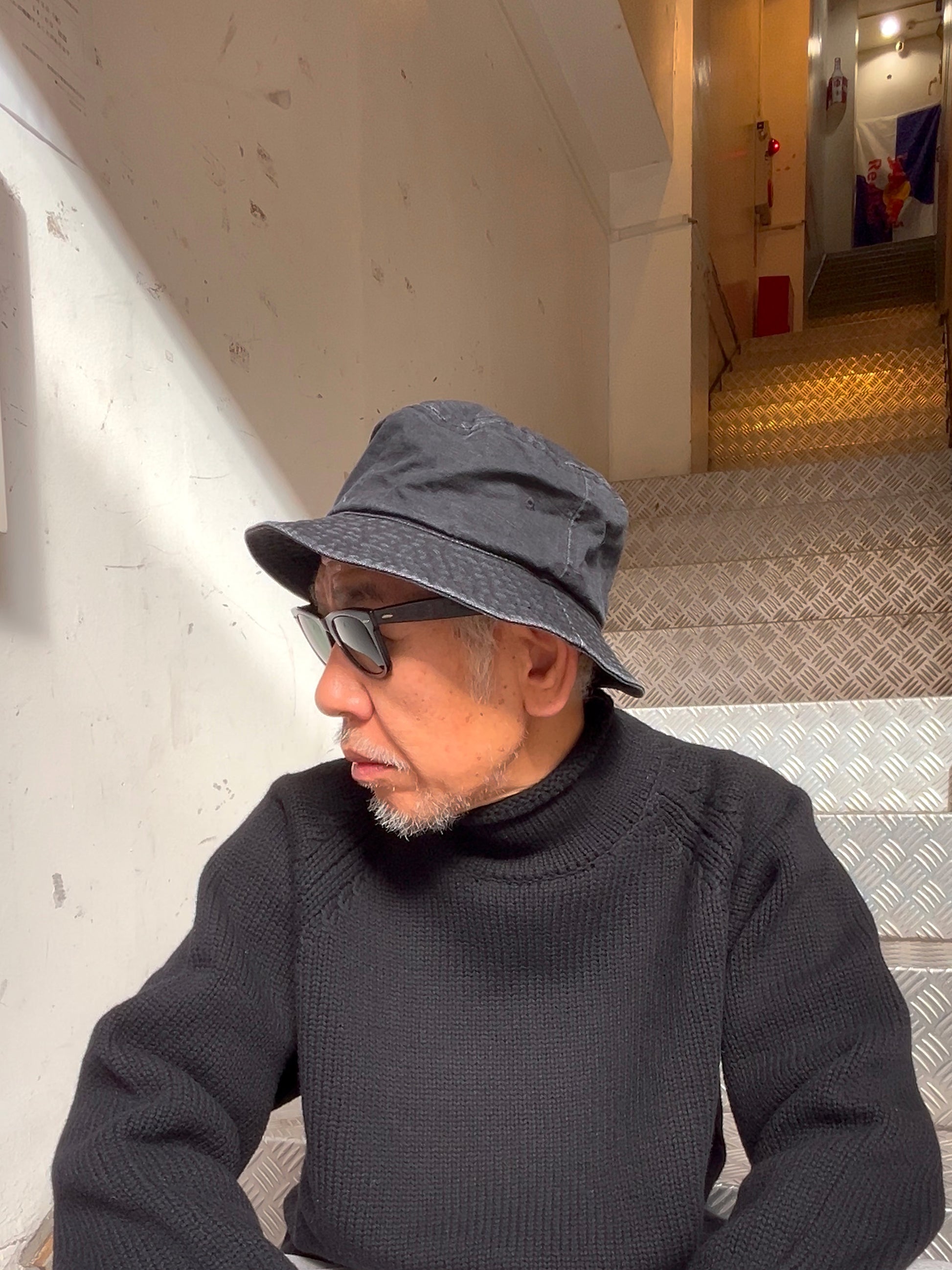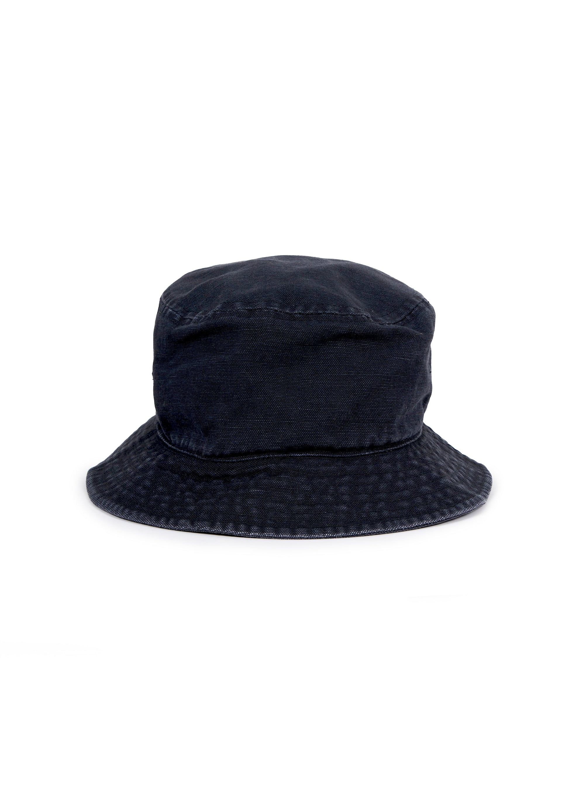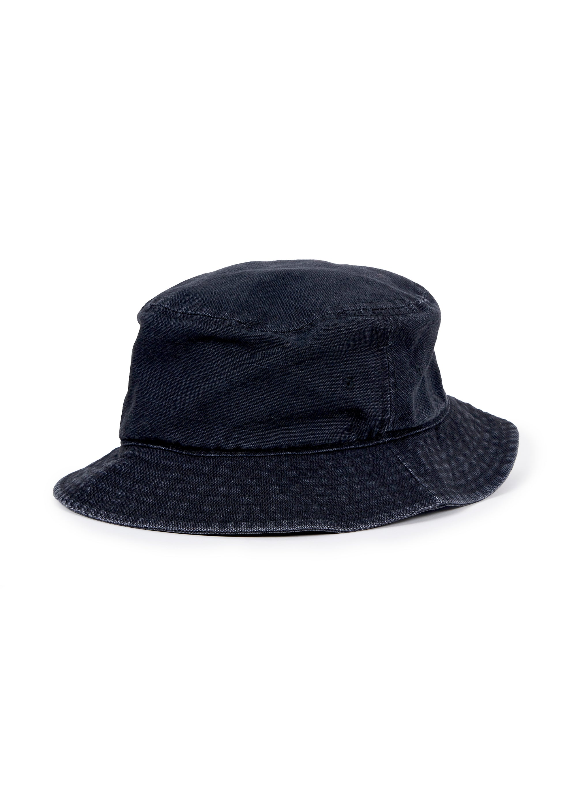 ヘビーオンスのコットンダック地を使用したバケットハット。ボディにハードウォッシュ加工を施し、ヴィンテージさながらの表情を演出する。