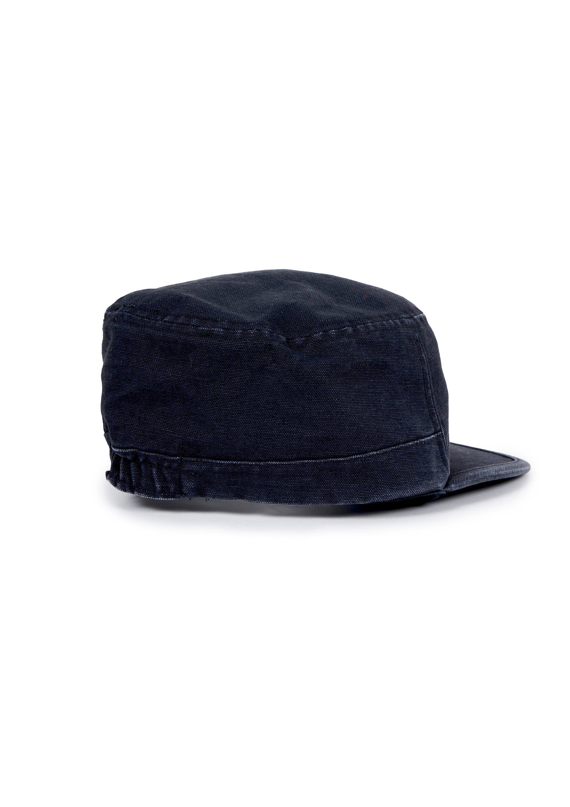 ヘビーオンスのコットンダック地を使用したワークキャップ。ボディにハードウォッシュ加工を施し、ヴィンテージさながらの表情を演出する。