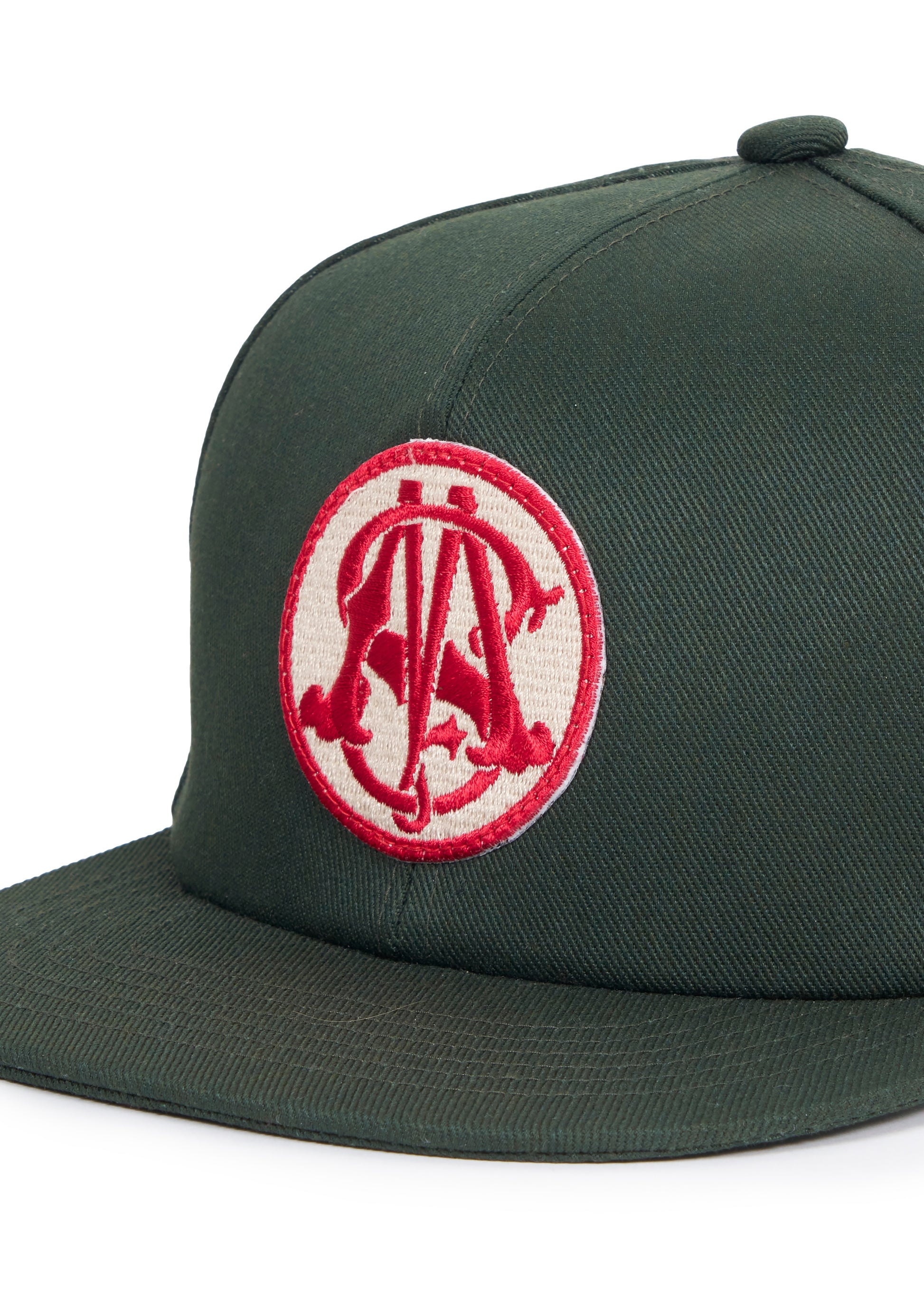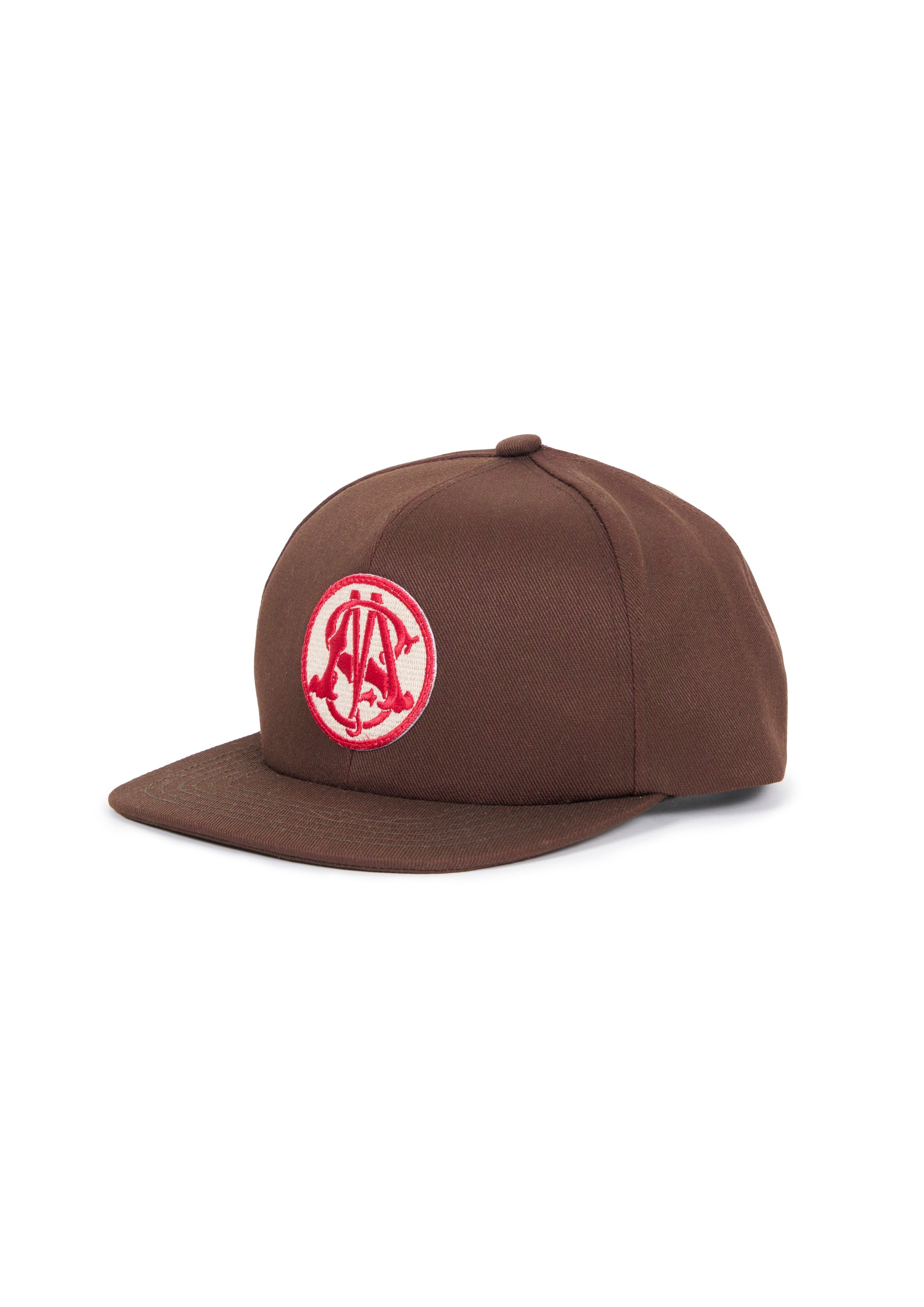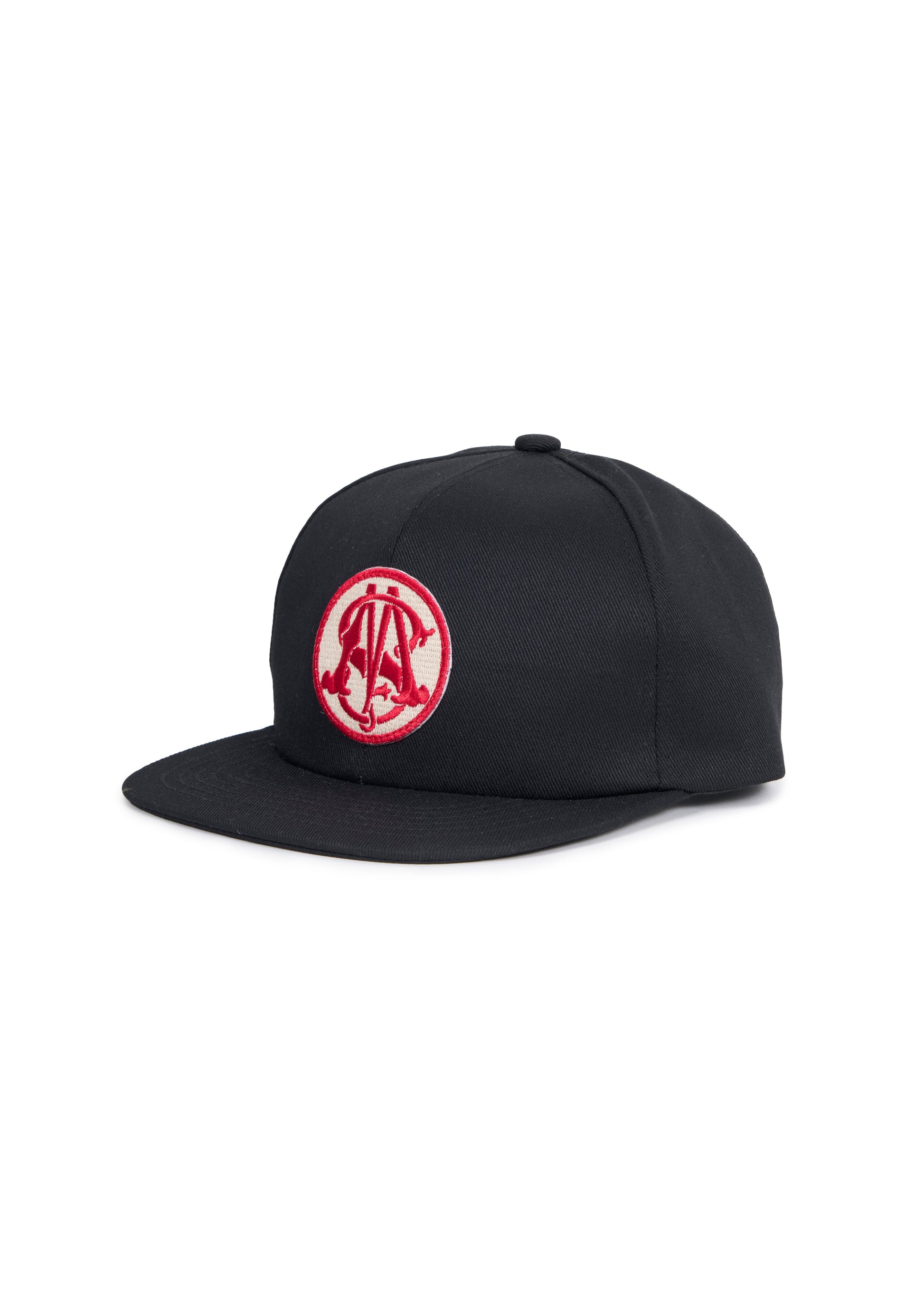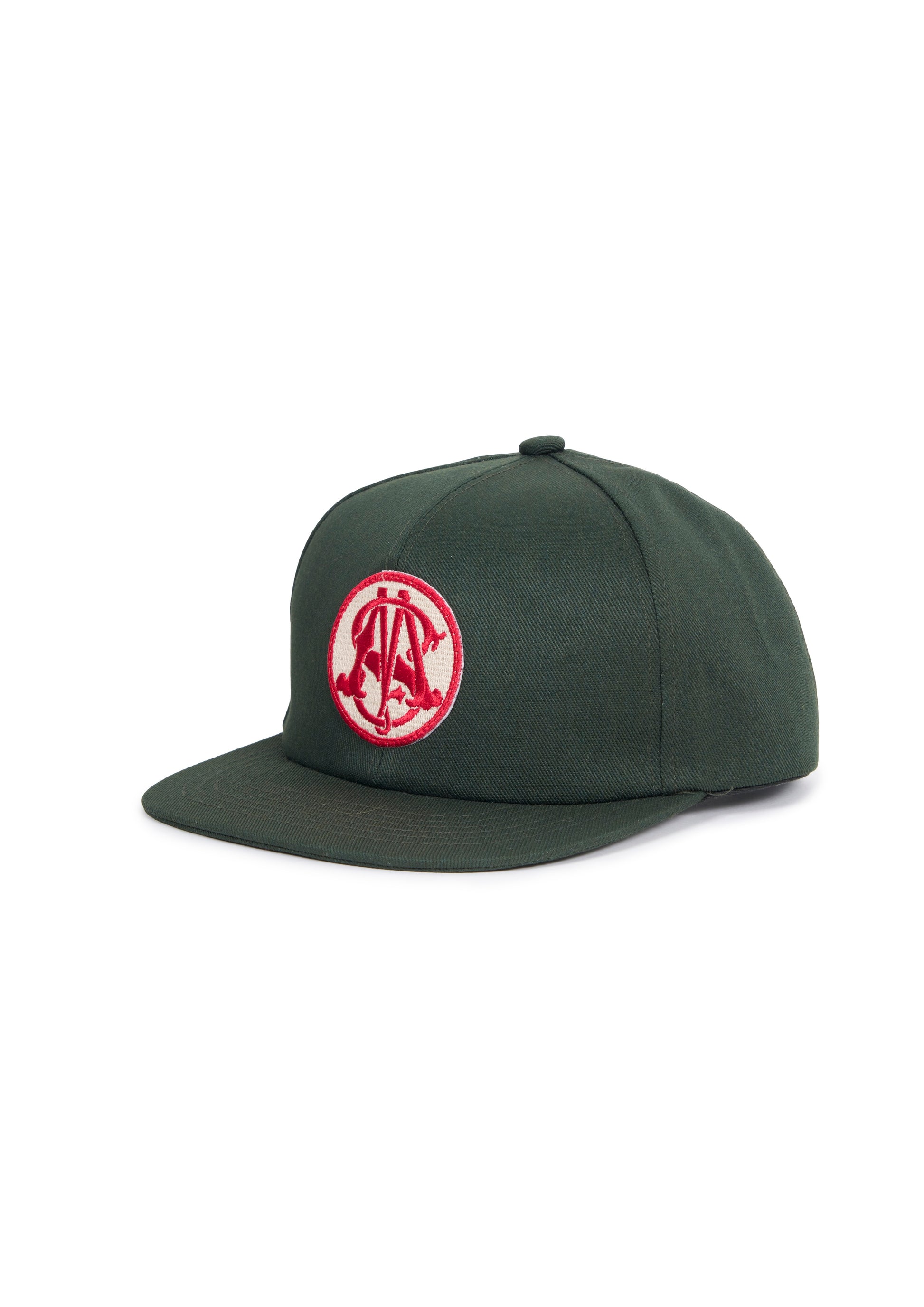 TC素材を使用したフルパネルキャップ。フロントにエンブレムモチーフのワッペンを叩きつけ。