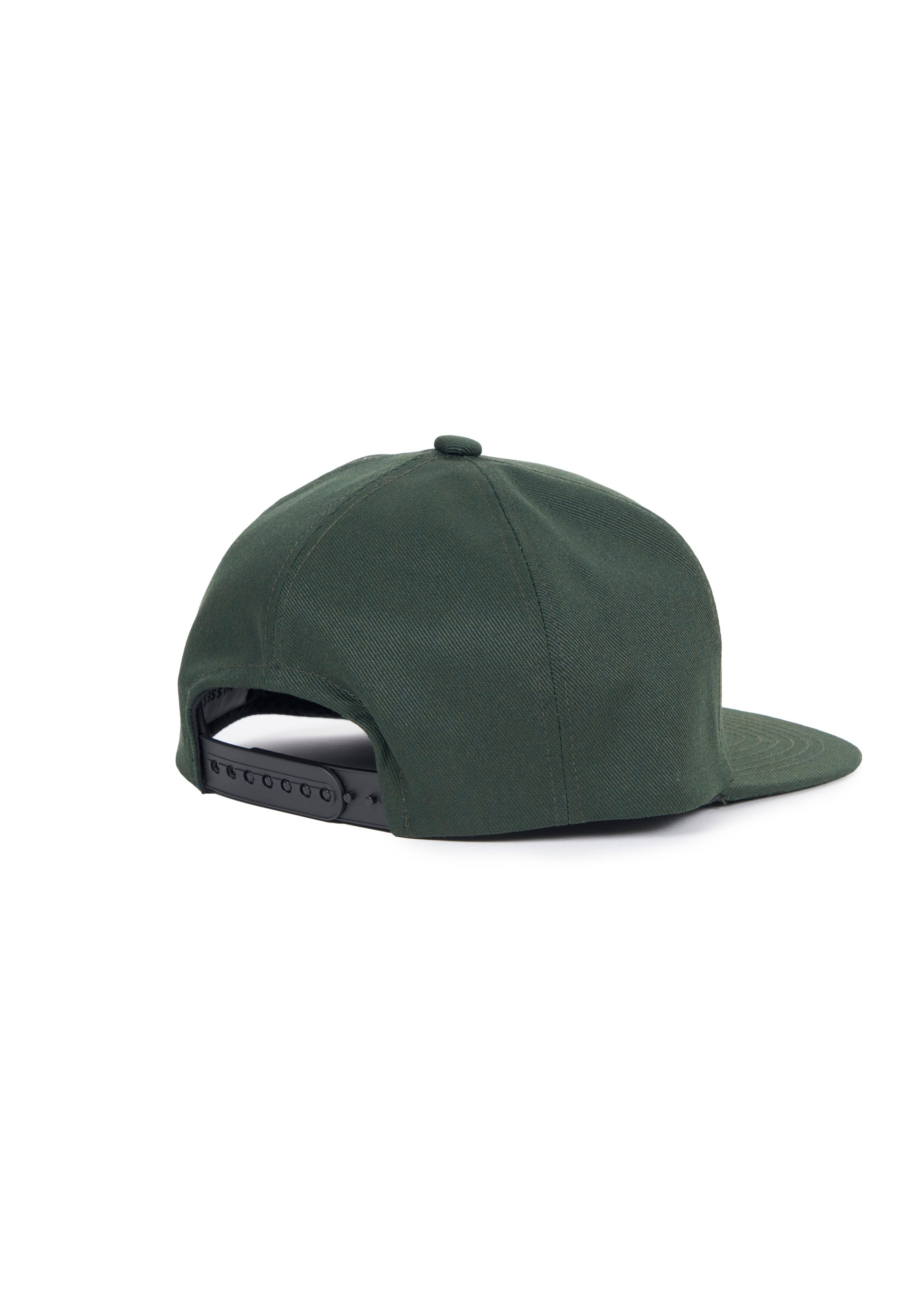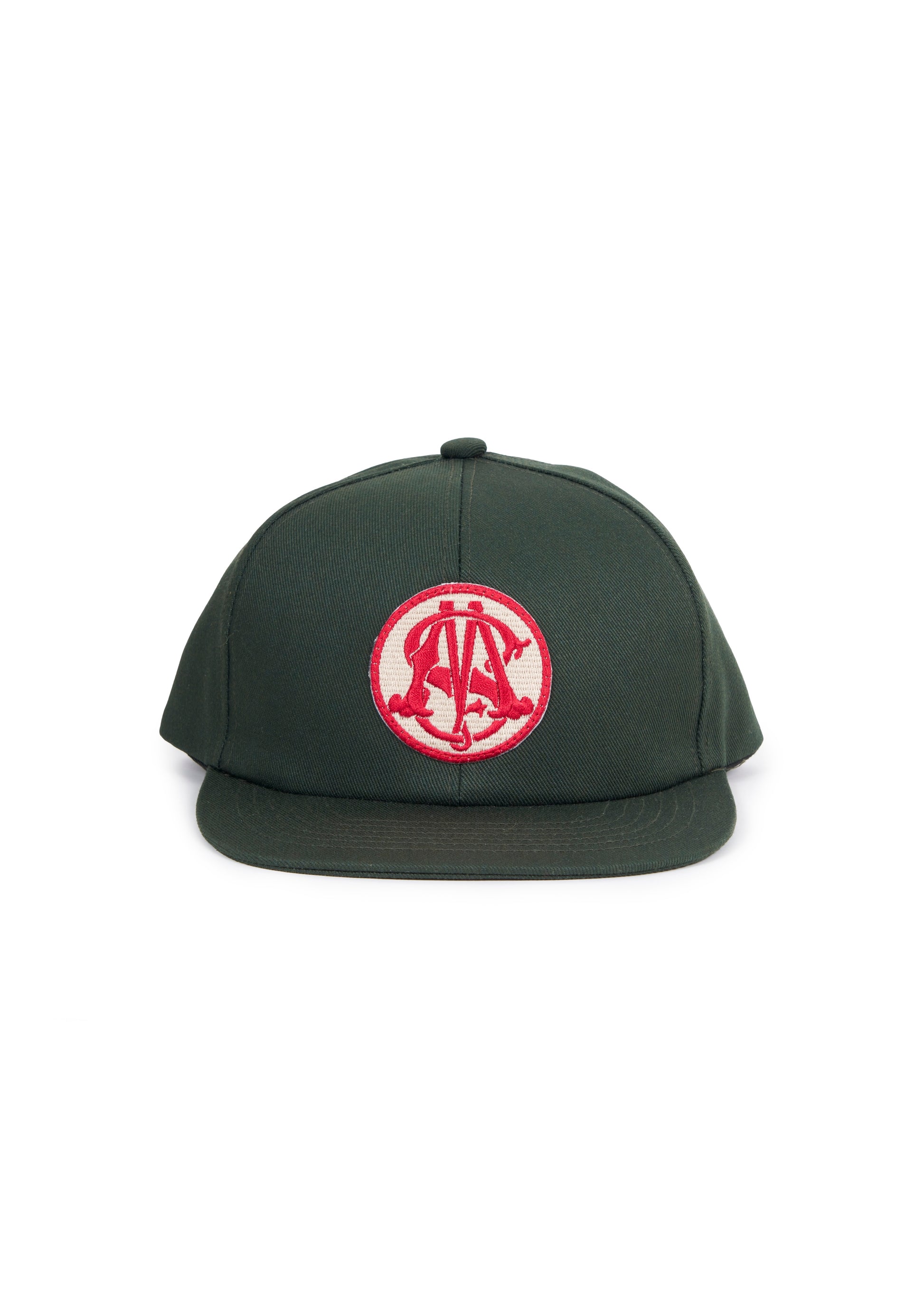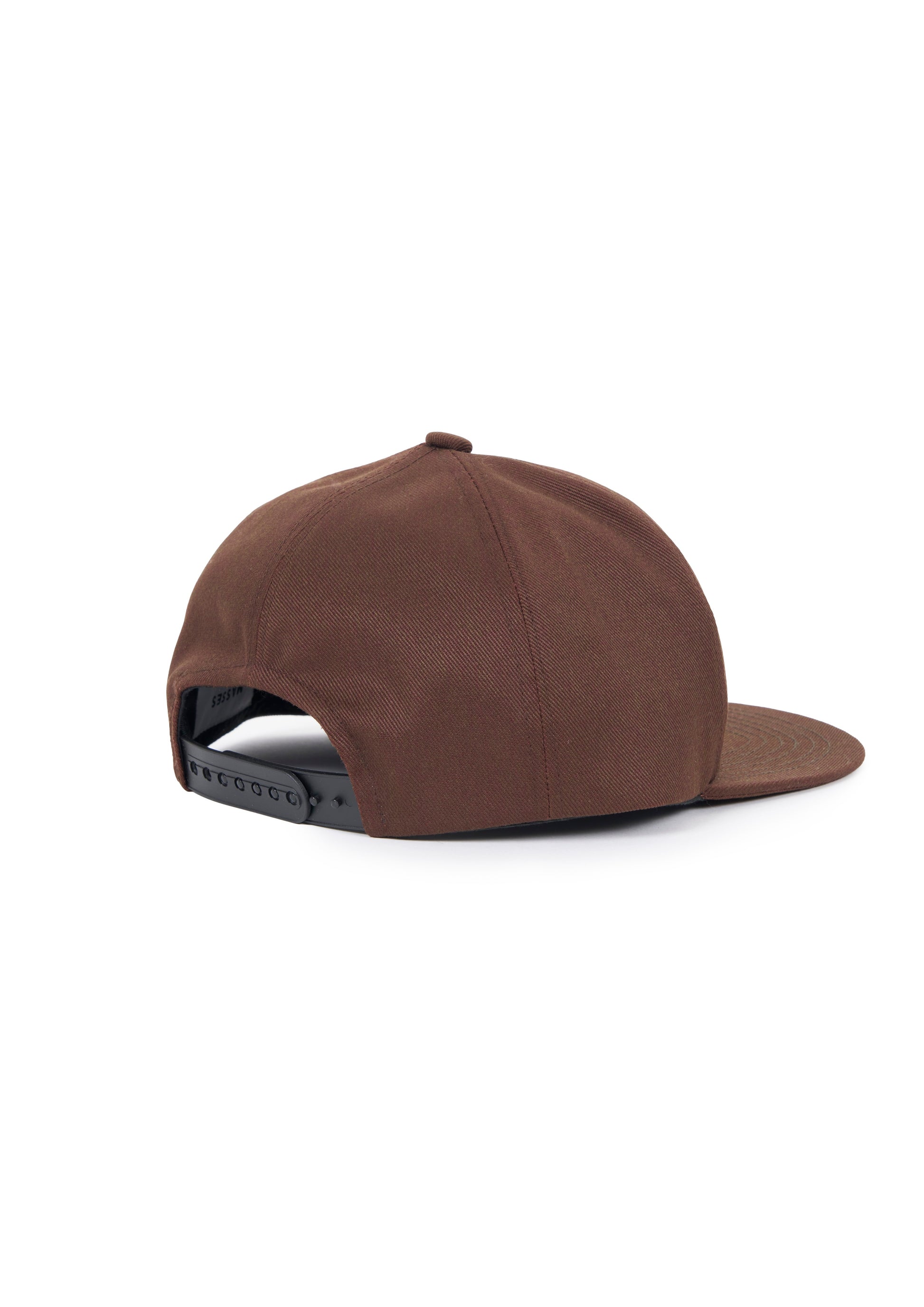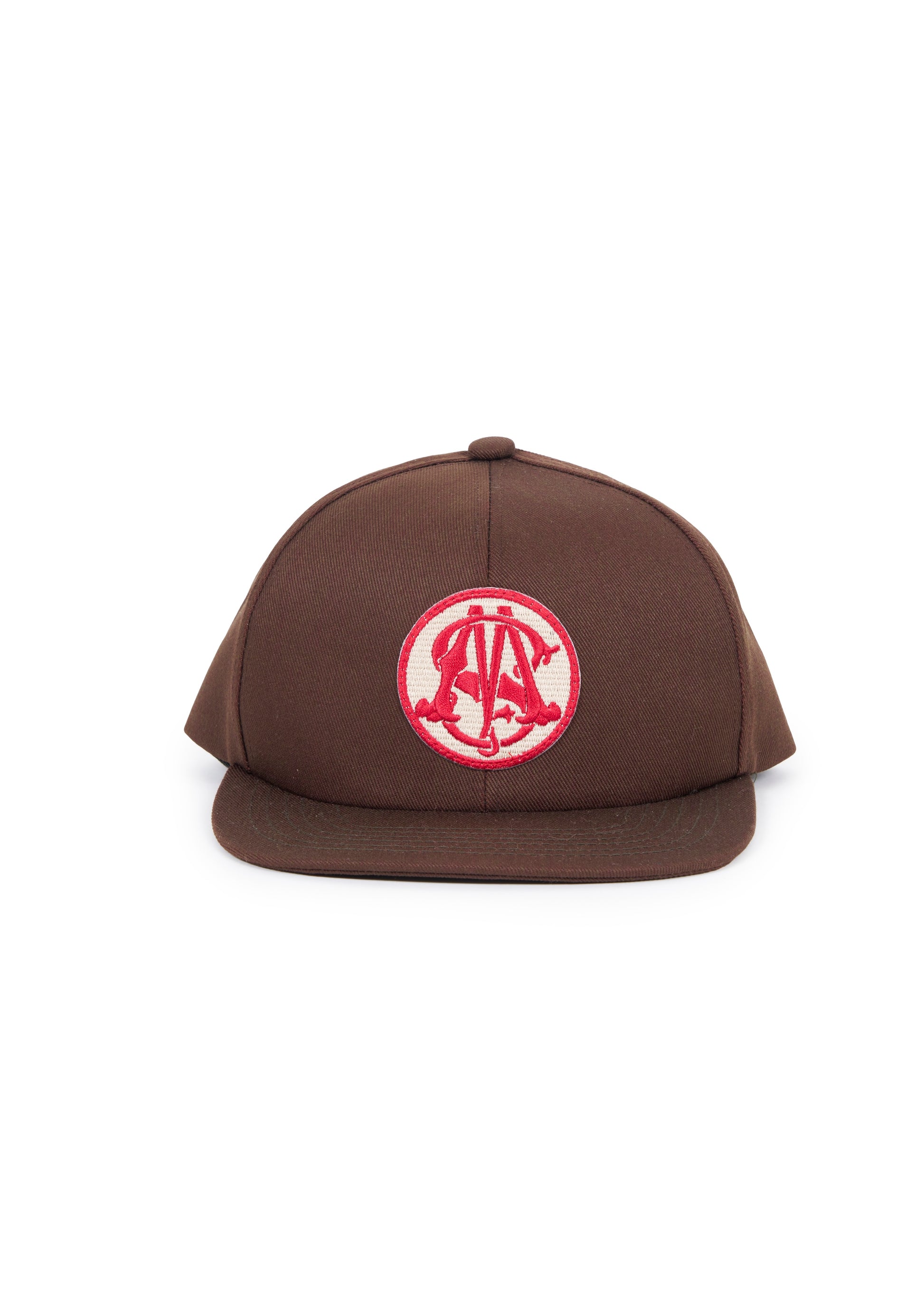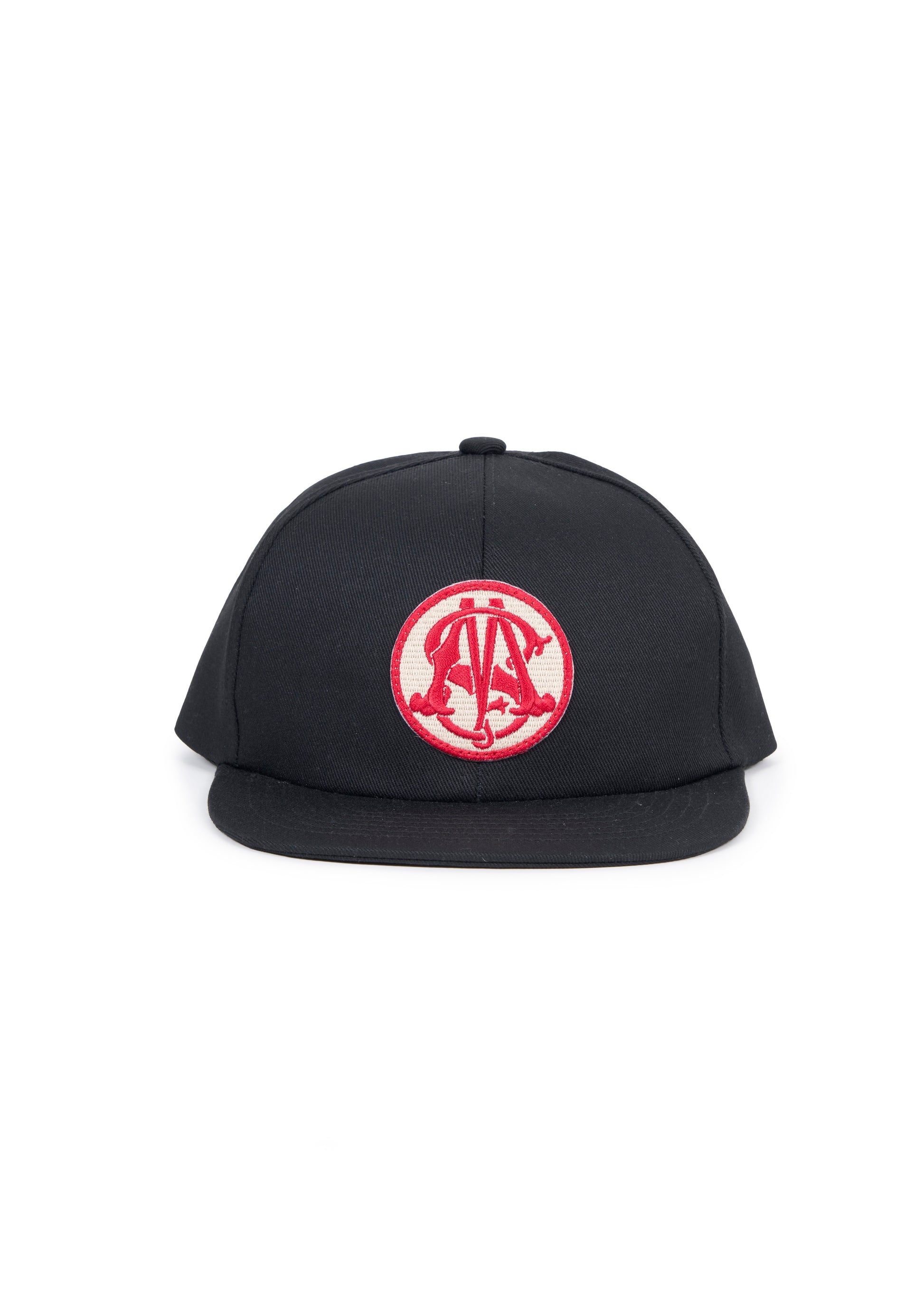 TC素材を使用したフルパネルキャップ。フロントにエンブレムモチーフのワッペンを叩きつけ。