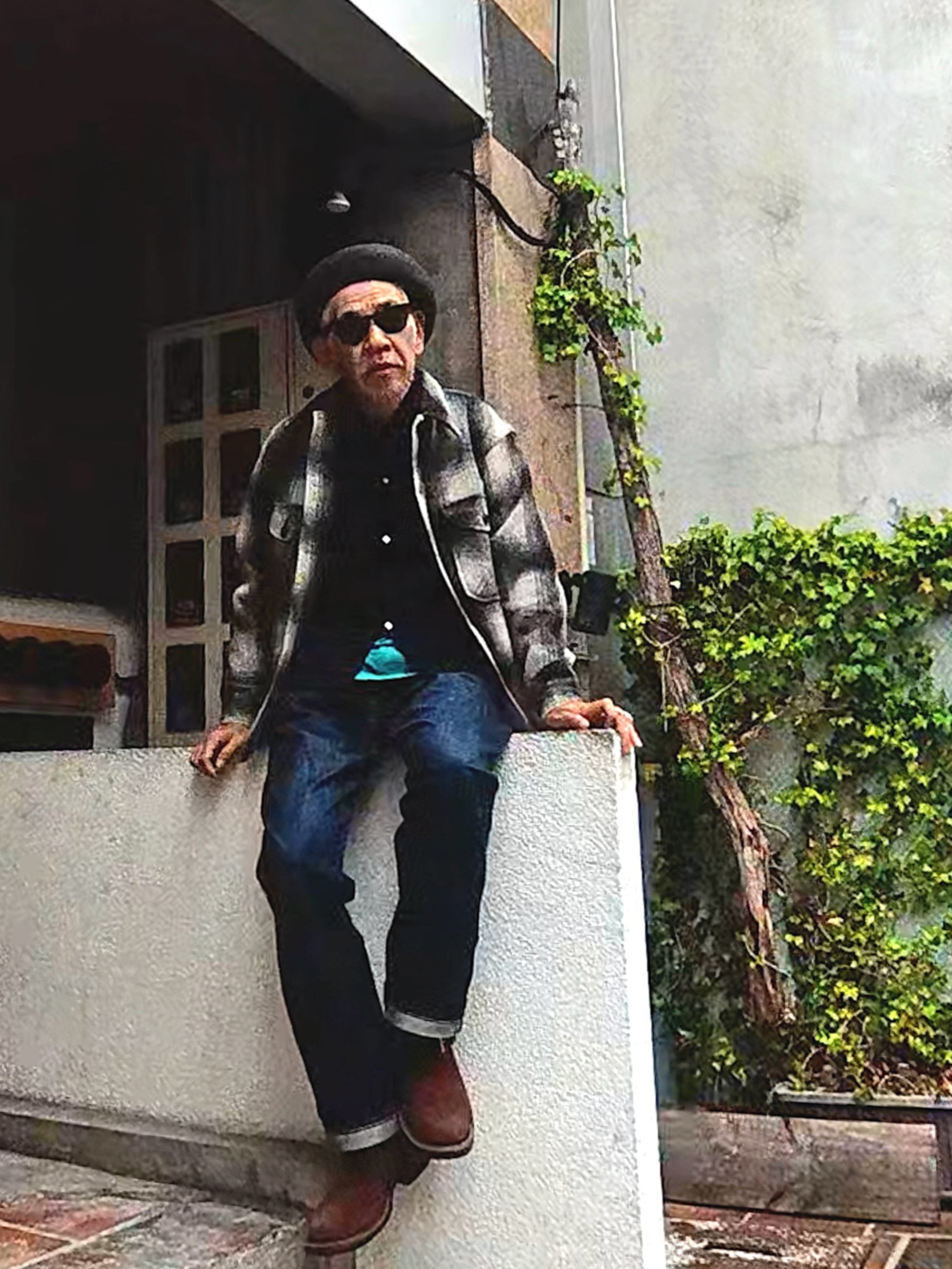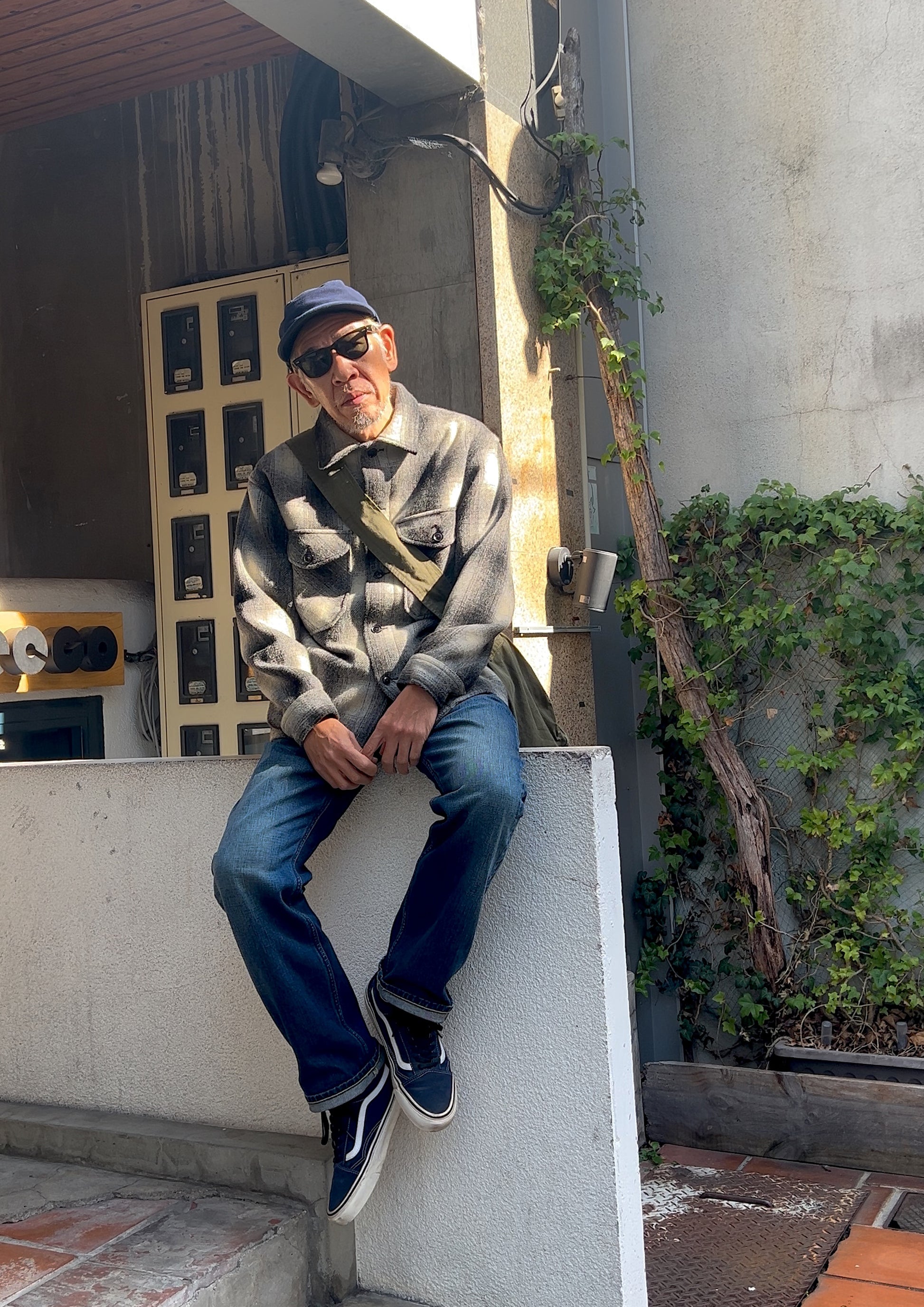 表地にブラック・グレー・ホワイトの3色で構成されたオンブレチェック柄ウール生地、ライニングにキュプラ地を使用し仕上げたCPOシャツジャケット。両胸に配置した大振りのフラップポケットは身頃とバイヤスで生地取りをしてある。