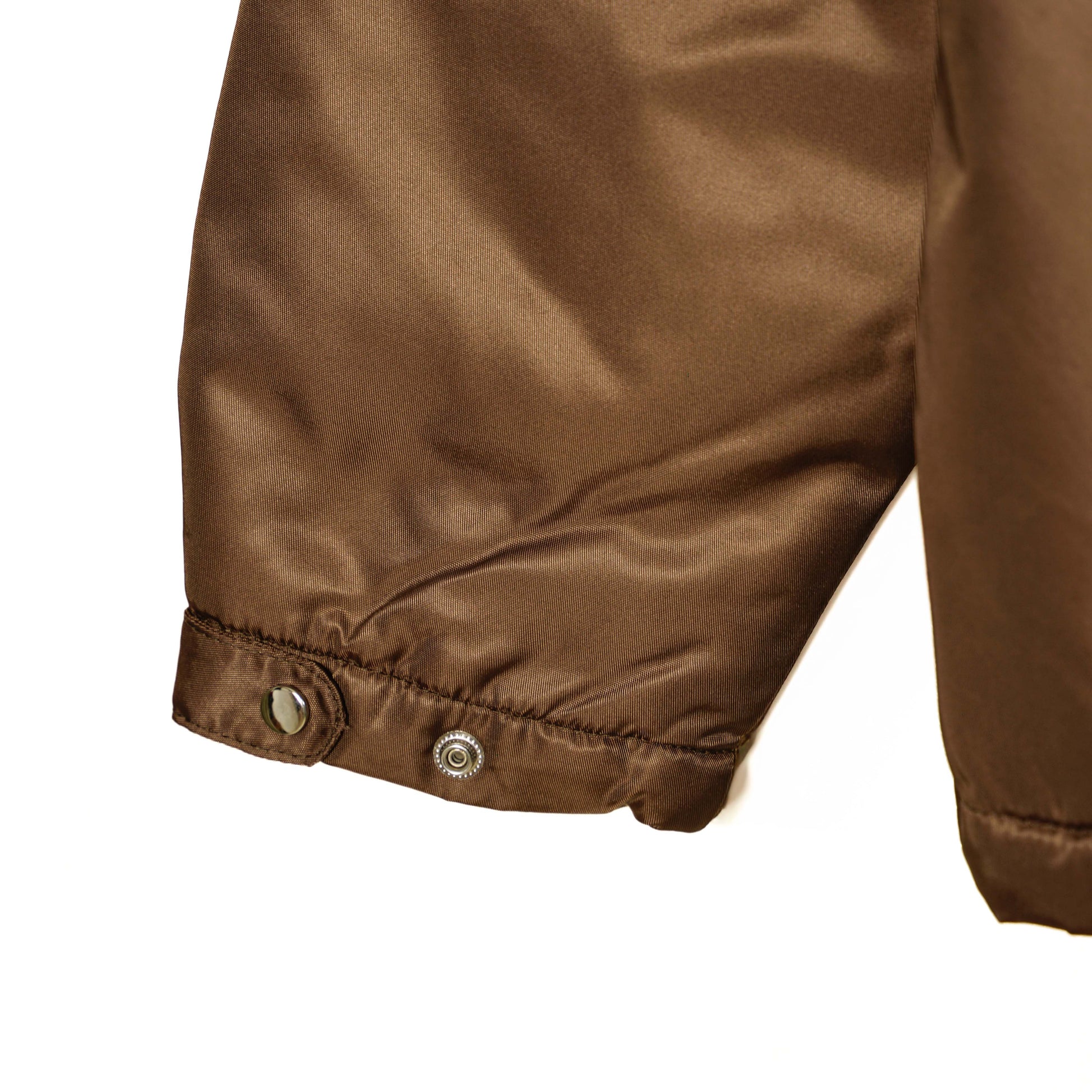 ほどよい光沢と厚みのあるナイロンツイル素材を使用。裏地には保温性に優れたフリースファーを使用することで、防寒具としても欠かせない一着である。