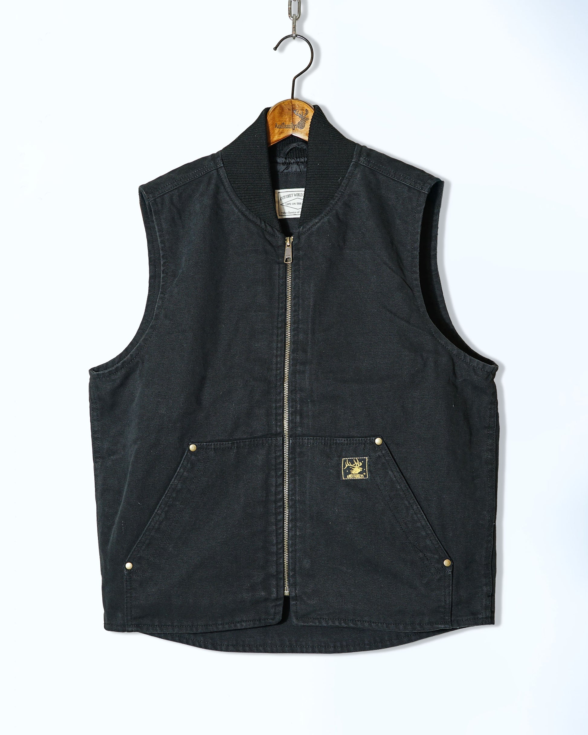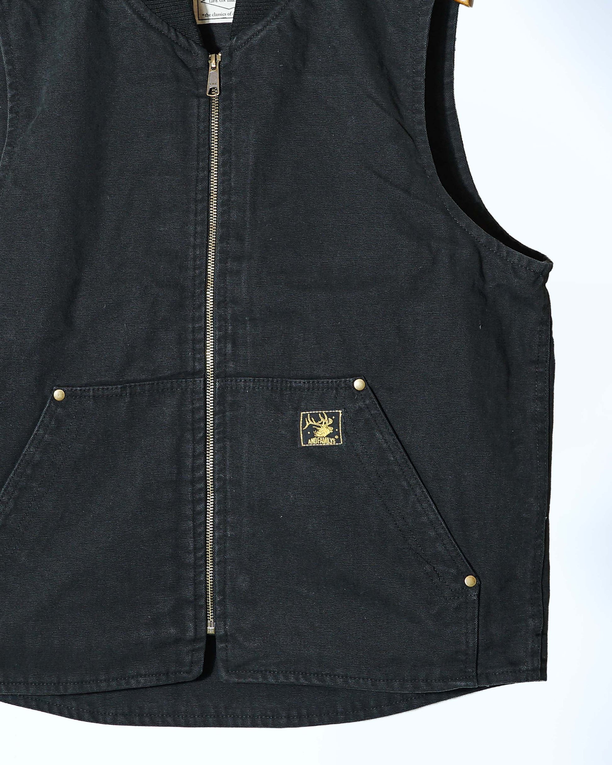 12オンスのダック素材を使用し程良くゆったりとしたボックスシルエットでシンプルなダックベスト。ストーンウォシュ加工を施しているので始めから着心地が良く着用して頂けます。